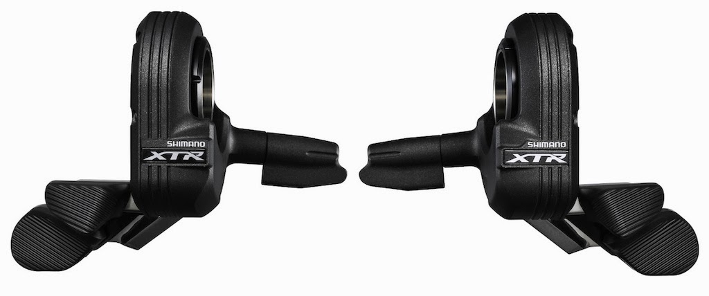 Speaking of shifters, XTR 9050 ushers in the new Di2 Firebolt which is a complete new take on the way mountain bike shifters are designed. Since they are simply buttons, Shimano was able to design a shifter that they say is perfectly designed with ideal ergonomics. The rotary design places two buttons directly at the tip of your thumbs. Each lever position can be adjusted independently and the buttons offer what Shimano calls "short stroke, perfect click."